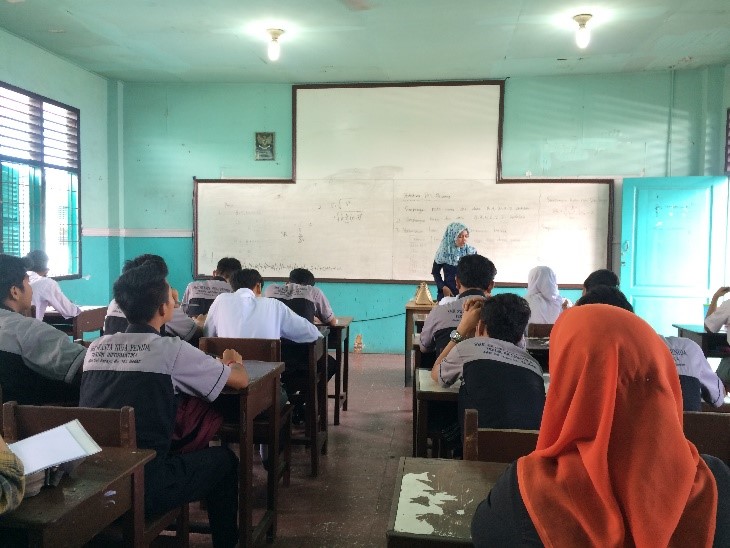 Penelitian dilakukan pada tanggal 30 Maret 2017 ke sekolah SMK Nusa Penida. Kelompok berangkat dari rumah masing-masing pada pukul 08:30 WIB dan sampai di sekolah SMK Nusa Penida pada pukul 10:00 WIB. Sebelum melakukan observasi kelompok membagi tugas untuk didalam kelas. kelompok memasuki ruang guru untuk berbicara terlebih dahulu kepada kepala sekolah SMK Nusa Penida dan berdiskusi mengenai kelas mana yang akan diobservasi. Kelompok dibawa oleh ibu guru untuk memasuki ruangan kelas yang pada saat itu sedang belajar matematika. Guru mempersilahkan kami masuk dan mengulang pembelajaran dari awal agar hal yang ingin diobervasi bisa berjalan maksimal. Kelompok mengamati cara guru menerangkan dan atensi siswa selama kurang lebih 25 menit.